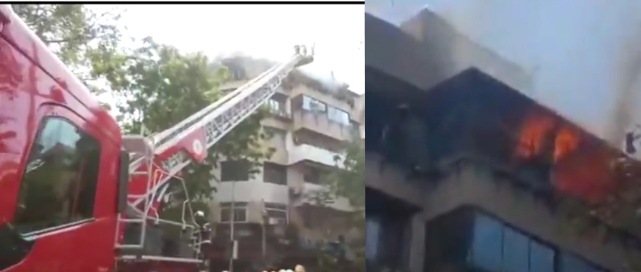 आजाद मैदान की पांच मंजिला मरीन चेंबर में लगी आग, आग बुझाने पहुंची दमकल की गाड़ियां