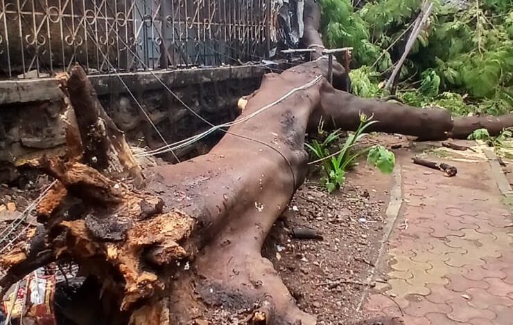 इसी तरह चेंबूर के ठक्कर बप्पा कालोनी सीएसटी रोड पर पेड़ की शाखा गिर गई। सड़क पर पैदल चल रहे हितेश शेरसामा (22) जयेश बोरा (22) उसकी चपेट में आकर घायल हो गए। दोनों का राजावाडी अस्पताल में इलाज चल रहा है।