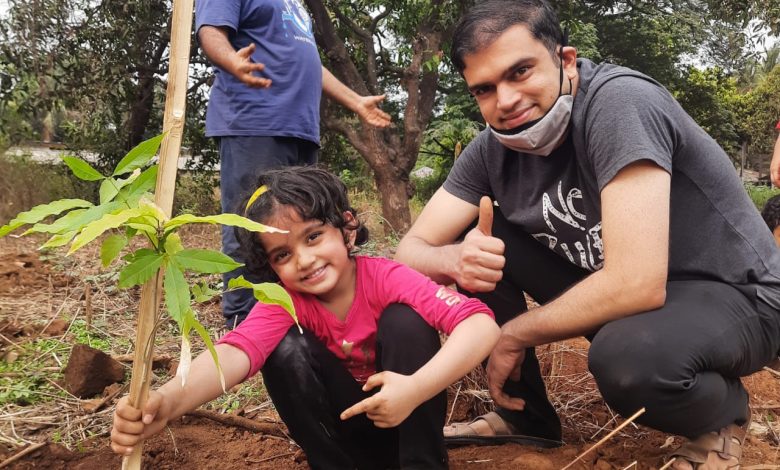 पांच साल की प्रमेया कांकेर अपने पिता के साथ कोकम पेड़ लगा कर अप्रैल कूल मनाया