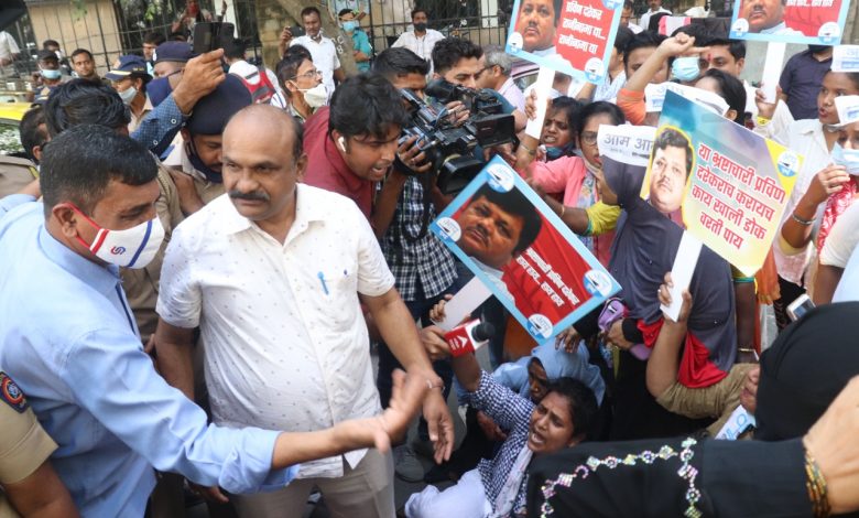 नारों और बैनरों के साथ भाजपा महाराष्ट्र कार्यालय के सामने एकत्र हुए पार्टी के नेताओं और कार्यकर्ताओं ने भाजपा नेता प्रवीण दरेकर के तत्काल इस्तीफे की मांग की. मुंबई बैंक का चुनाव लड़ने और जीतने के लिए, मजदूर होने का झूठा दावा करके बीजेपी के नेता प्रतिपक्ष प्रवीण दरेकर ने मुंबईकरों को धोखा दिया. उन्होंने इस पद पर बने रहने का नैतिक अधिकार खो दिया है. उन्हें अपने अपराध के लिए कड़ी से कड़ी सजा का सामना करना ही होगा.