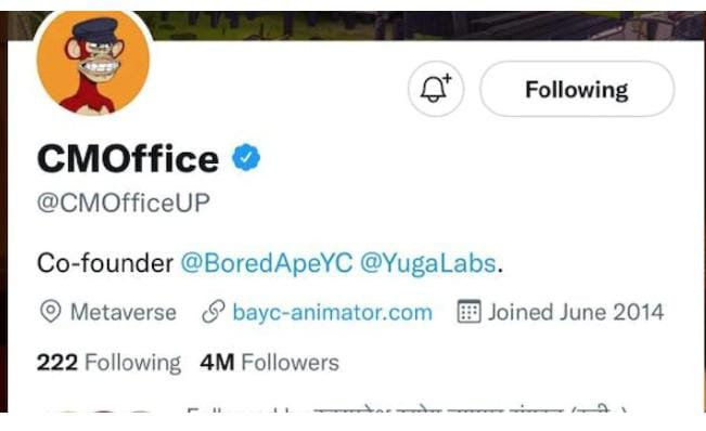 मुख्यमंत्री योगी के ऑफिस का ट्विटर अकाउंट हैक