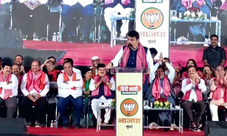मुंबई. महाराष्ट्र के पूर्व मंत्री व विपक्ष के नेता देवेंद्र फडणवीस ने आज उत्तर भारतीयों की सभा में अपने कहे अनुसार शिवसेना को ठोंक-ठोंक (Fadnvis Reply to uddhav thakarey) कर जवाब दिया है. शनिवार को बीकेसी की सभा में मुख्यमंत्री उद्धव ठाकरे के एक एक सवालों का चुन-चुन कर जवाब दिया.