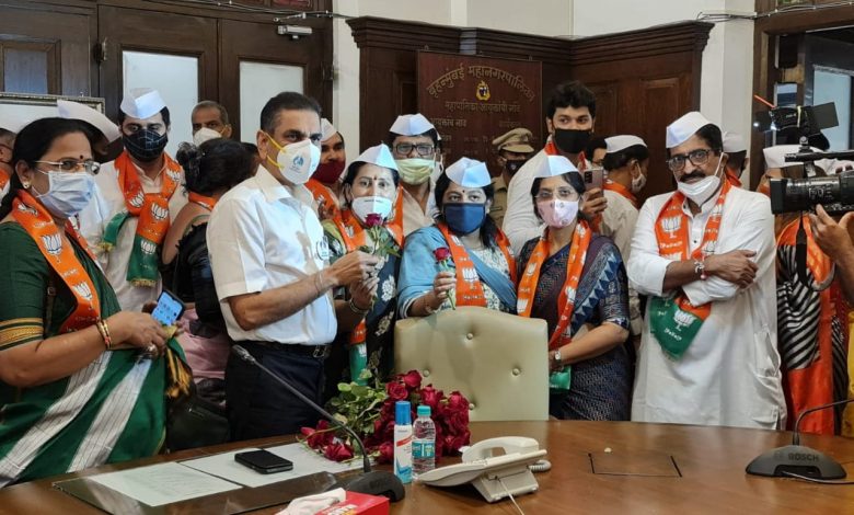 मुंबई. बीएमसी वॉर्डों के परिसीमन को लेकर शिवसेना बीजेपी में ठन गई है. सोमवार को बीजेपी के सभी नगरसेवकों ने गांधीगिरी स्टाइल में बीएमसी कमिश्नर इकबाल सिंह चहल को गुलाब देकर ‘मुन्ना भाई स्टाइल में कहा गेट वेल सून ..’ बीजेपी गुट नेता प्रभाकर शिंदे ने कहा कि बीएमसी कमिश्नर इकबाल सिंह चहल सत्ताधारी पार्टी शिवसेना के मोहरे बन कर काम कर रहे हैं. बीएमसी वार्डों का 25% से ज्यादा परिसीमन किया गया है. जबकि केवल10% परिसीमन किया जाना था. वॉर्डो का अपने हिसाब से परिसीमन करा कर शिवसेना पुनः बीएमसी की सत्ता पाने का स्वप्न देख रही है जिसे इस बार मुंबई की जनता भंग कर देगी. बीजेपी के सभी 83 नगरसेवकों ने बीएमसी में आंदोलन किया. बीएमसी में पार्टी नेता विनोद मिश्रा, प्रवक्ता भालचंद्र शिरसाट ने आंदोलन की अगुवाई की.