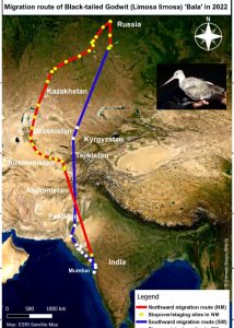 आईएनएस न्यूज नेटवर्क मुंबई: एक मध्यम आकार का पीला गुलाबी ब्लैक-टेल्ड गाडविट (BTG) जिसकी लंबाई 44 सेंटीमीटर और वजन 280 ग्राम है (Flying spirits with a small wing / Little Black-tailed Gadwit traveled to five countries) उसने हाल ही में छह देशों की यात्रा की है. आपके हाथ की हथेली में फिट होने के लिए काफी छोटी यह पक्षी 3 महीने में 5000 किमी का सफर तय कर चुकी है. इस नन्ही पक्षी के हौंसले को देखिए कि उसने रुस से ठाणे की 4,200किमी दूरी पांच दिन में तय की. ब्लैक-टेल्ड गाडविट्स की एक पक्षी के सौर-संचालित नैनो रेडियो टैगिंग के डिकोडिंग के बाद प्रवास का रहस्य सामने आया है.बॉम्बे नेचुरल हिस्ट्री सोसाइटी के वैज्ञानिकों ने हाल ही में 3 महीने के अवलोकन के विवरण का खुलासा किया. ब्लैक-टेल्ड गाडविट एक मध्यम आकार का पक्षी है. इसकी घटती वैश्विक आबादी के कारण इसे लुप्तप्राय प्रजाति के रूप में वर्गीकृत किया गया है. इसकी लंबाई 40-44 सेमी है और इसका वजन लगभग 280-340 ग्राम होता है जिसमें हल्के गुलाबी रंग के पैर, गहरे रंग के होते हैं. अपनी रंगीन चोंच और काली पूंछ से आसानी से पहचानी जा सकती है. जैसा कि नाम से पता चलता है. हालांकि मध्य एशियाई पक्षियों की जनसंख्या की स्थिति, प्रवृत्तियों और प्रवास के बारे में बहुत कम जानकारी है, पूर्वी एशियाई ऑस्ट्रेलियाई और यूरो-अफ्रीकी पक्षियों की इन प्रजातियों का पक्षी पक्षियों द्वारा आज तक अपेक्षाकृत अच्छी तरह से अध्ययन किया गया है. ये पक्षी ठाणे की खाड़ी और आसपास के तटीय क्षेत्रों में पाई जाती हैं. वे इस क्षेत्र में कैसे प्रवास करते हैं यह एक रहस्य है. पक्षी देखने वाले और वन्यजीव जीवविज्ञानी इसलिए इस प्रवास से मोहित हैं. ब्लैक-टेल्ड गाडविट के प्रवास के रहस्य को समझने के लिए, बीएनएचएस के वैज्ञानिकों की एक टीम ने एक पक्षी को 'बाला' (3.5 ग्राम) नामक सौर-संचालित नैनो रेडियो लगाया था. बीएनएचएस के उप निदेशक और परियोजना प्रमुख राहुल खोत ने कहा कि इस रेडियो टैग का नाम प्रख्यात पक्षी विज्ञानिक और भारतीय उपमहाद्वीप के प्रमुख प्रवासी पक्षी विशेषज्ञ डॉ. एस. बालचंद्रन के नाम पर रखा गया है. फिलहाल हम 'बाला' के मूवमेंट पर फोकस कर रहे हैं और इसकी जानकारी रख रहे हैं. उसका विश्लेषण भी कर रहे है. जानकारी के साथ एक रिपोर्ट पूरी होने के बाद प्रकाशित की जाएगी. ब्लैक-टेल्ड गाडविट बाला ने 47 दिनों (24 मार्च से 11 जून) में लगभग 5000 किमी की यात्रा की और दक्षिण-पश्चिमी साइबेरिया, रूस में प्रजनन स्थल तक पहुंचे इसने अपने उत्तरी प्रवास के दौरान कई बिंदुओं पर कुछ दिनों के लिए रुकते हुए, छह देशों की यात्रा की. इनमें पाकिस्तान, अफगानिस्तान, तुर्कमेनिस्तान, उज्बेकिस्तान, कजाकिस्तान और ताजाकिस्तान शामिल हैं. बाला को ठाणे की खाड़ी तक पहुंचने के लिए 4,200 किमी की दूरी तय करनी पड़ी. इस दूरी को तय करने में 