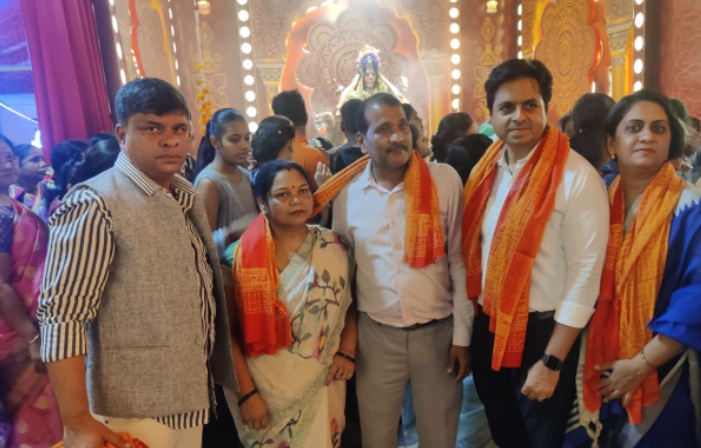 मुंबई.भारतीय जनता पार्टी दक्षिण मुंबई जिले के (Leaders engaged in the darshan of Maa Durga with family) महामंत्री दीपक सावंत सपत्नी वर्ली विधान सभा के वरिष्ठ उपाध्यक्ष बालगोविंद तिवारी सपत्नी ने वर्ली विधान सभा परिसर में स्थापित माता रानी का दर्शन कर आशीर्वाद लिया.