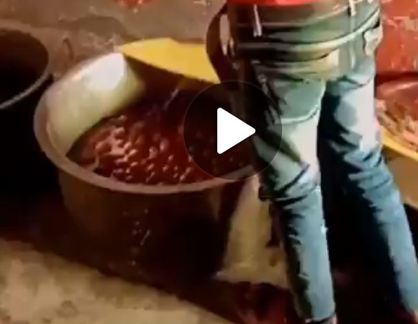 वायरल वीडियो में दिख रहा है कि किसी प्रोग्राम के लिए बड़े टब में गुलाब जाम बना कर रख गया है. लाल शर्ट और जींस पहने एक लड़का टब के शिरे में पेशाब करते दिखाई दे रहा है. कोई पीछे से इस लड़के का वीडियो बना रहा है. वीडियो में लड़के का चेहरा नहीं दिखाई दे रहा है.