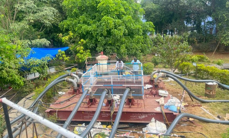 100 हार्सपावर के पंप से 24×7 निकाला जा रहा पानी