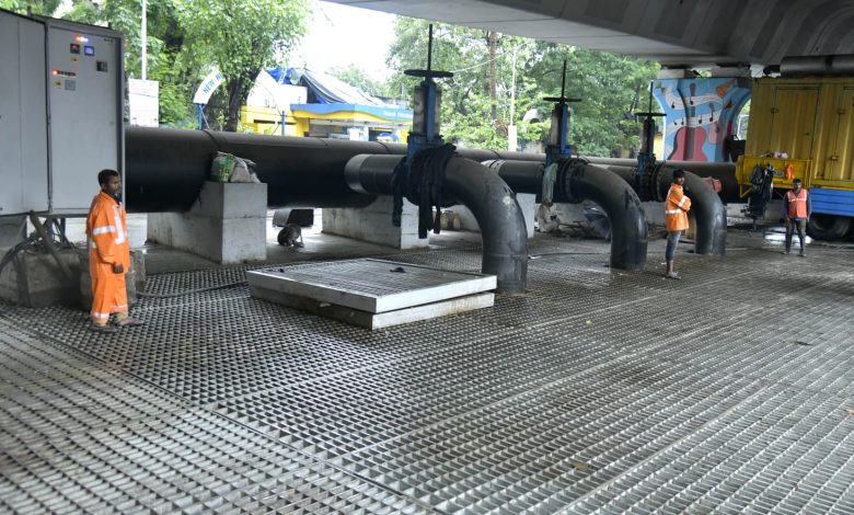 गांधी मार्केट क्षेत्र में 2021 के मानसून सीज़न तक औसतन 3 फीट से 4 फीट पानी भरता था. पानी निकलने में कम से कम 8 घंटे से 10 घंटे तक का समय लग जाता था. परिणामस्वरूप, सड़क यातायात बंद रखना पड़ता था. यहां पानी पंप करने के लिए 1200 मिमी व्यास वाला स्टील राइजिंग चैनल लगाया गया है. इस चैनल में छोटी-छोटी पुलियों के माध्यम से जल निकासी की व्यवस्था और जोड़े में चार पंप लगाए गए. इस वर्ष 21 जून 2023 की बारिश में 104 मिमी बारिश के बावजूद केवल 4 इंच पानी जमा हुआ.