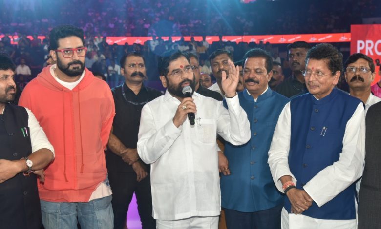 वर्ली के एनएससीआई डोम में देश की पहली प्रो गोविंदा लीग 2023 के उद्घाटन पर मुख्यमंत्री शिंदे बोल रहे थे. खेल और युवा कल्याण मंत्री संजय बनसोडे, उद्योग मंत्री उदय सामंत, स्कूल शिक्षा मंत्री दीपक केसरकर, कौशल विकास, उद्यमिता और नवाचार मंत्री मंगल प्रभात लोढ़ा, सांसद राहुल शेवाले, विधायक प्रताप सरनाईक, पूर्व विधायक रवींद्र फाटक, बाला नंदगांवकर, नितिन देसाई, अभिनेता अभिषेक बच्चन, पूर्वेश सरनाईक, दहीहांडी समन्वय समिति के पदाधिकारी उपस्थित थे.